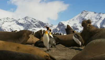 King penguins need to get past a natural barrier of elephant seals to reach their colony.