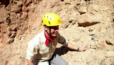The team attempt to digitally map a fissure created by an earthquake.